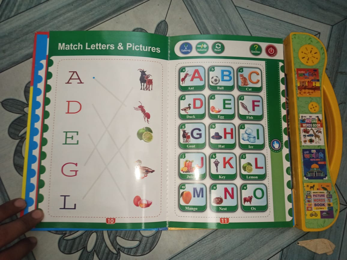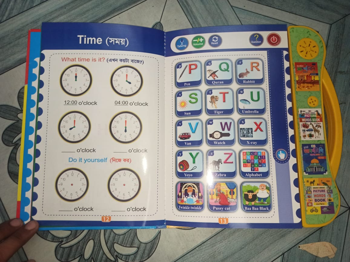 এই টকিং বুকটি হলো শিশুদের জন্য একটি স্মার্ট ও ইন্টার্যাকটিভ লার্নিং ডিভাইস, যা শব্দ, আলাপ ও বোতাম চাপার মাধ্যমে শিশুর শেখার আগ্রহ বাড়িয়ে তোলে। রিচার্জেবল হওয়ায় বারবার ব্যাটারি বদলানোর ঝামেলা নেই - একবার চার্জেই দীর্ঘক্ষণ ব্যবহার করা যায় |