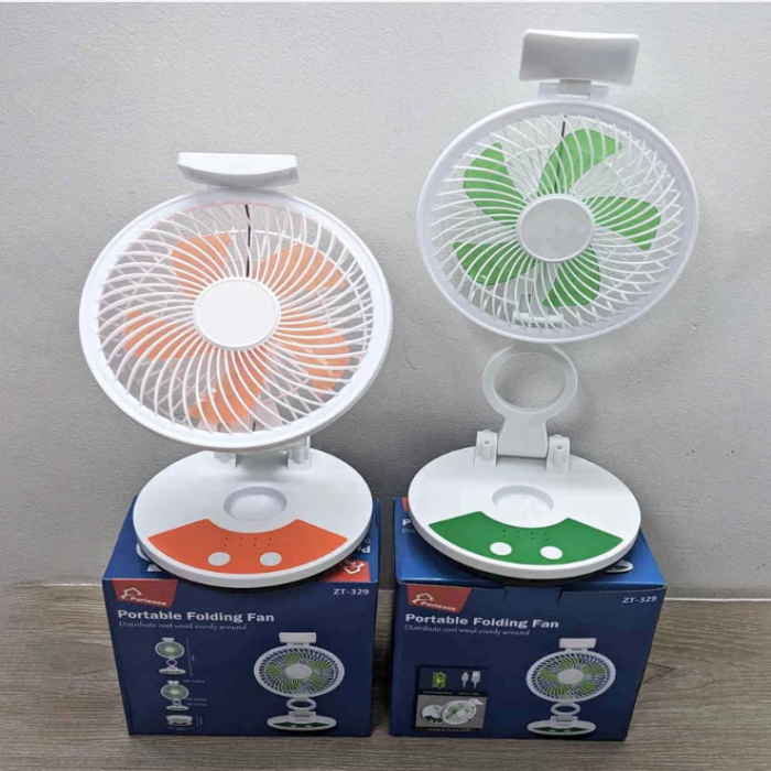 Portable folding fan (ZT-329) রিচার্জ্যাবল ফোল্ডিং টেবিল ফ্যান উইথ লাইট